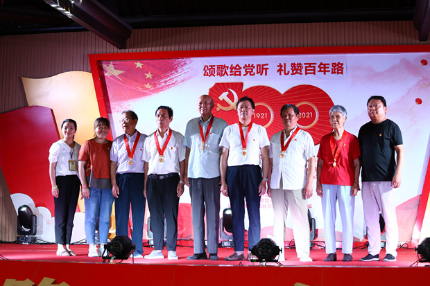 晚会还穿插了“光荣在党五十年”纪念章颁发仪式与党史知识竞答。在颁奖环节,老党员分享了自己在党50年、坚定信念跟党走的心得感悟,并对新时代党员殷切嘱托。轻松活跃的党史知识有奖竞答,吸引了现场观众与过往行人热情参与,大家共同挥舞手中小党旗,将晚会氛围推向高潮,全场汇聚成一片红色的海洋。