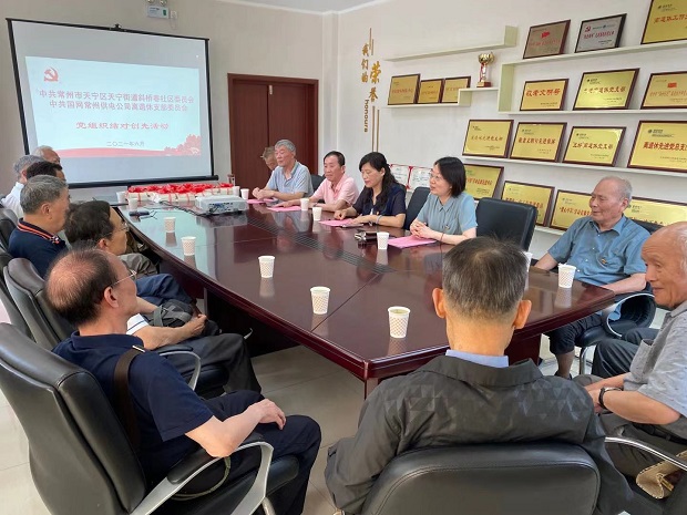 6月22日下午两点,斜桥巷社区党委书记袁琴娣同社区第五、第六党支部书记邱泉源、周志中来到辖区共建单位国网常州供电公司离退休党支部参加“旗帜领航聚合力,社企共建迎百年”共建活动。