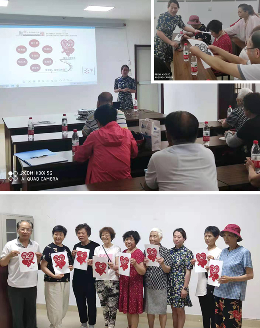 首先,庄铭杰老师从了解中国共产党的历史作为切入点,知源头、知兴替、铭责任、明现在、明未来、感党恩几个方面展开和社区的居民们一起来回顾和展望。接下来庄铭杰老师介绍了项目组“一颗红心献给党”主题作品创作立意,在给居民传授了基本的剪纸方法后,带着居民尝试着开始剪刻。