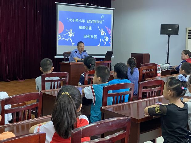 为增强未成年人的安全防范意识,减少和防止暑期安全事故的发生,让他们度过一个安全愉快的假期。2021年7月6日,河苑社区组织辖区60余名学生在社区三楼开展“大手牵小手 安全我来讲”知识讲座。