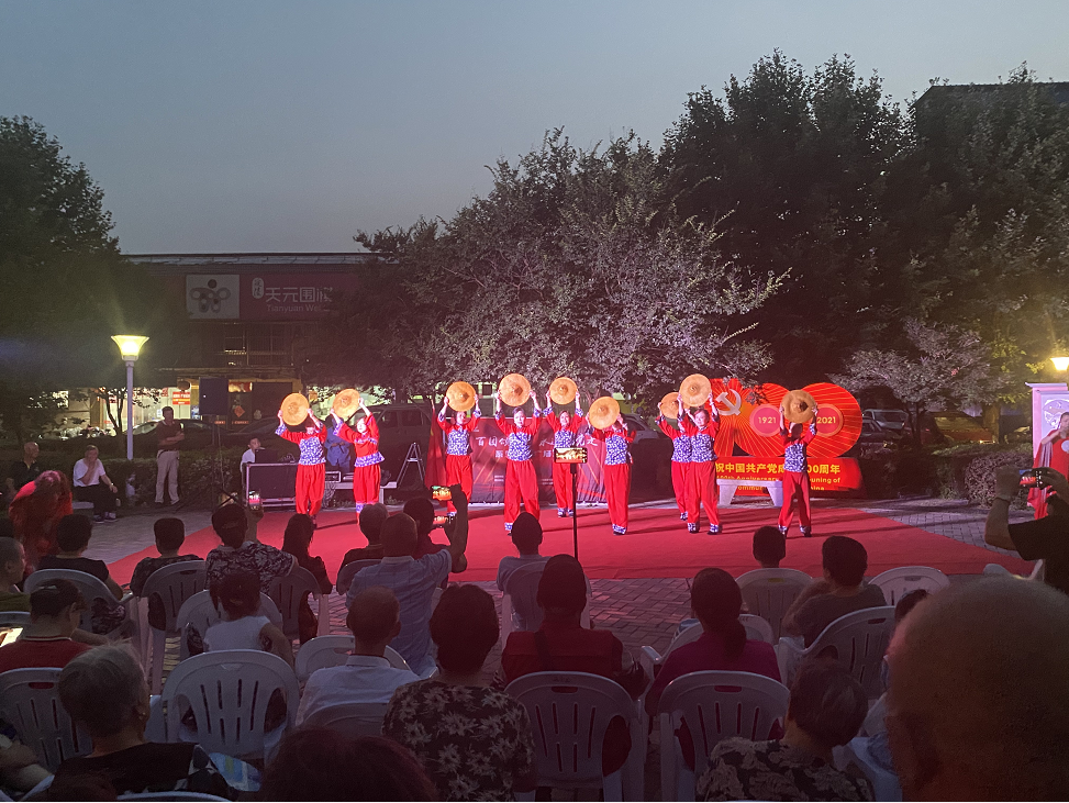 傍晚,在辖内广场上举办了文艺汇演,此次晚会的节目内容形式多样、内容丰富,运用音乐舞蹈、合唱独唱、乐器演奏等多种艺术手段和表现形式,表演中穿插有关计生政策和知识的互问互答,加强与居民观众的互动,提高居民的幸福感。