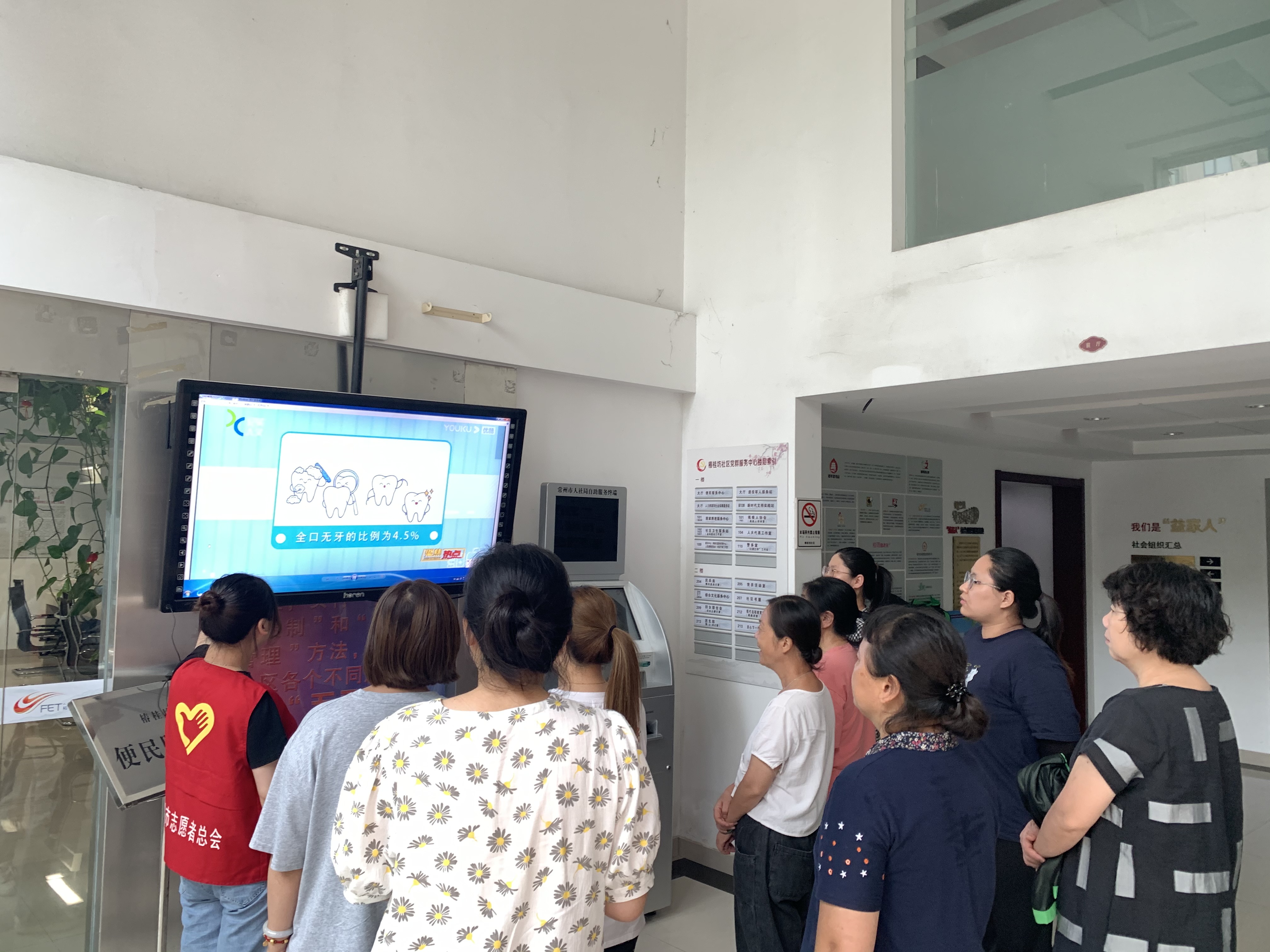 为了进一步普及老年人口腔保健意识,普及护齿健康知识,预防和减少口腔疾病的发生,7月13日上午,椿桂坊社区邀请老年人们来社区观看口腔健康视频。