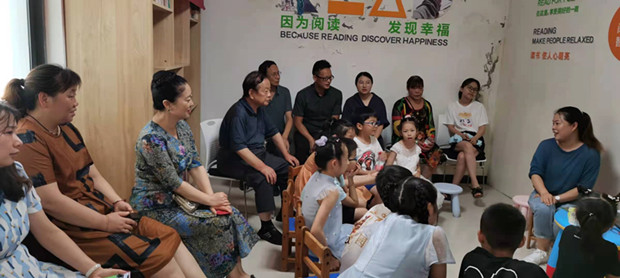 调研组一行首先来到方麓村校外辅导站察看了薛埠镇社区教育中心组织的以“老干部、老医生、老教师、老模范和老战士”为主的“五老”志愿者辅导孩子们书法、乐器、亲子活动等情况,调研组一行饶有兴趣地和孩子们一起参加了活动,亲自感受孩子们成长的快乐。活动中,大家对孩子所展现的高超的能力和水平赞叹不已。座谈会上,谢杏林委员向大家详细汇报了近几年来薛埠镇“五老护苗”工作的开展情况。朱金荣副主任对该项工作取得的成绩表示赞赏,他指出,薛埠镇“五老护苗”工作有计划,有总结,帮扶面广量大,扎实有效。帮扶对象目标明确,重点突出,为该镇困境儿童的发展起到的不可估量的作用,特别是老年大学工作开展得生机勃勃,老年同志的再学习、再提高为“护苗”工程奠定了坚实的基础。希望该镇进一步利用地方优势,加强资源整合,精心设计教育方案,开展更为丰富多彩的教育活动,把关心下一代工作做大做强。