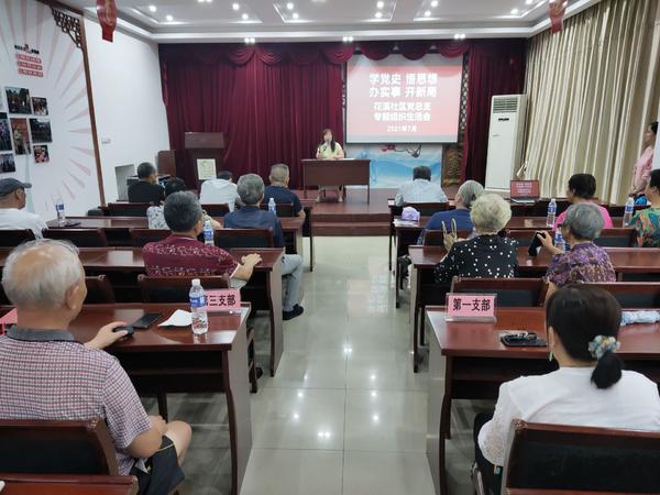 7月19日上午,花溪社区组织党员在花溪公园道德讲堂开展“学党史 悟思想 办实事 开新局”党史学习教育。
