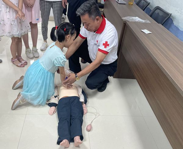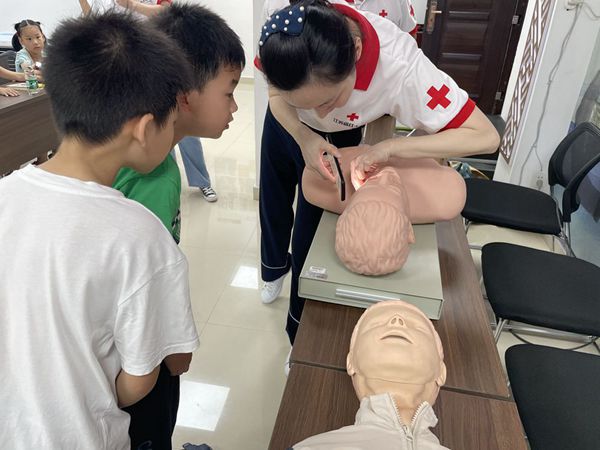 快乐过暑假,安全不放假,在享受愉快假期的同时,绝不能忽视孩子的安全防护。溧阳市红十字会志愿者为孩子们生动的讲解了防溺水、心肺复苏、海姆立克急救、烫伤急救、蚊虫咬伤急救等安全知识,并通过现场演示和学生实操体验的方式教大家掌握基本的急救技能,小朋友们在志愿者的指导下积极演示自己的成果。