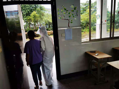 老师做好防护措施,带着该名学生按照指定路线到隔离观察室。再次用水银温度计测量体温,确认发烧,做好相关记录并安抚学生情绪。班主任随即通知家长送到常州市发热门诊定点医院就诊治疗,同时,班主任将该班学生安排至备用教室。
