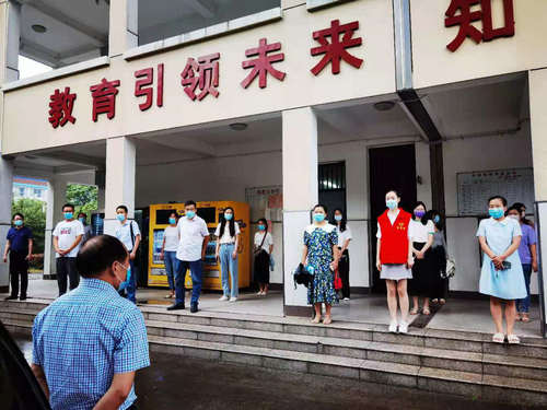 教职员工自觉佩戴好口罩,间隔1米,从不同道口进入校园,门卫保安负责交通指挥。值日老师做好防护措施,用额温枪逐一测量师生员工体温,确定符合要求方可入校。