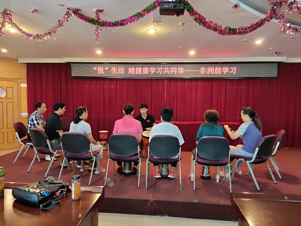 武进区湖塘镇南都社区“悦”生活越健康学习共同体组织学习非洲鼓