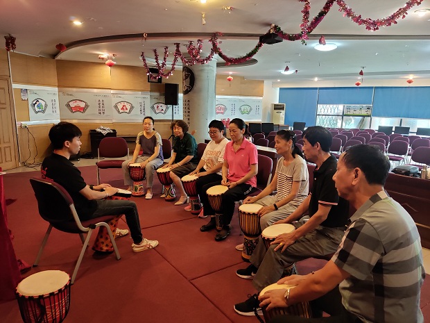 为了进一步丰富社区居民文化生活,满足社区居民学习音乐的需求和热情,弘扬健康文明的生活方式,南都社区组织“悦”生活越健康学习共同体中的部分学员开展了免费的非洲鼓培训。此次培训,预计至九月底结束。