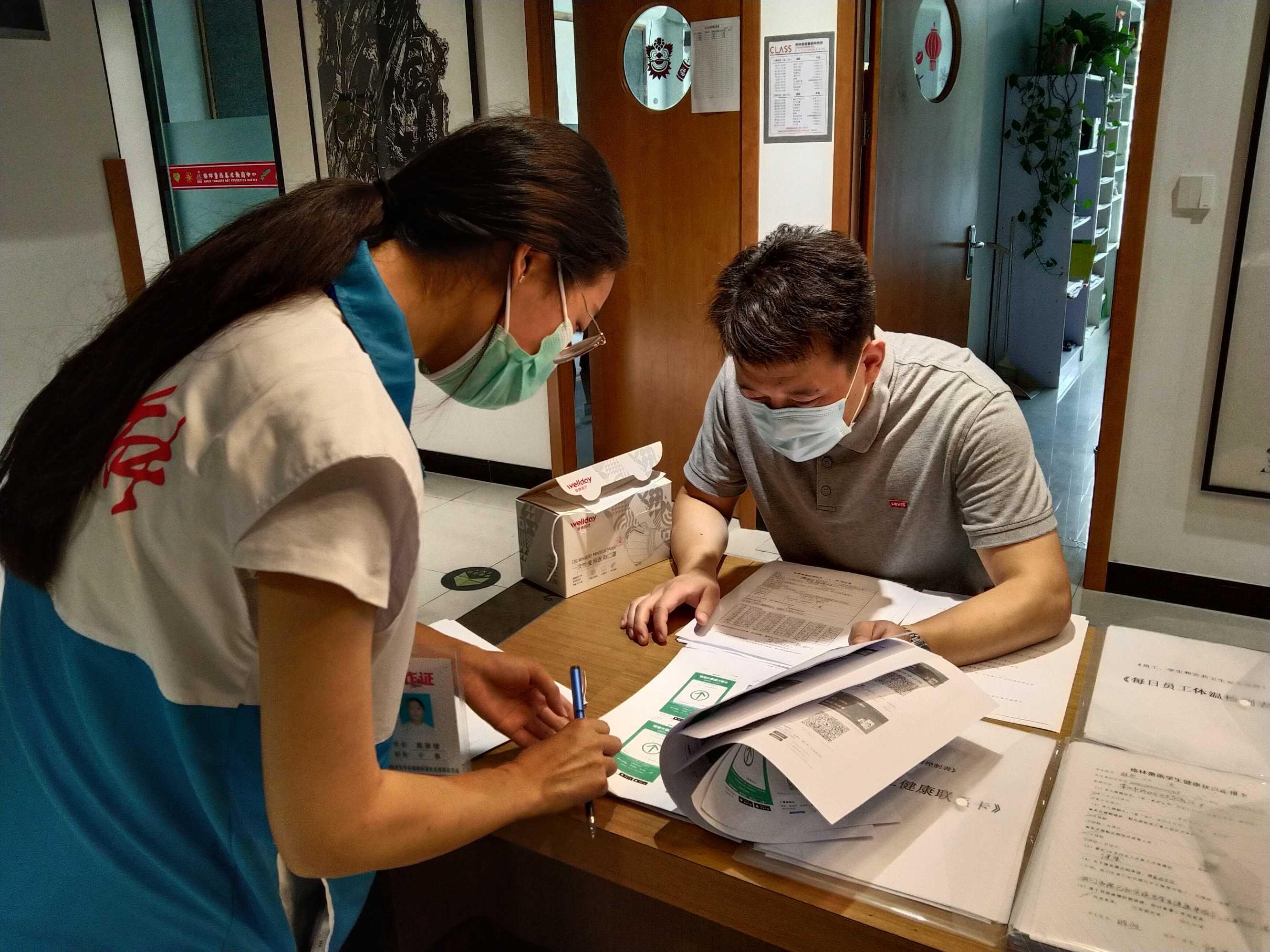 随着复工申请表的提交,社区工作人员对辖区各检查点进行实地查看,仔细检查了师生的健康排查机制和健康档案、机构清洁消毒、防疫物资设备、临时隔离间等落实情况。发现普遍存在清洁消毒记录不规范、健康档案不齐全等共性问题,检查人员现场对机构负责人进行了指导,要求严格做好疫情期间复工复课的相关工作。