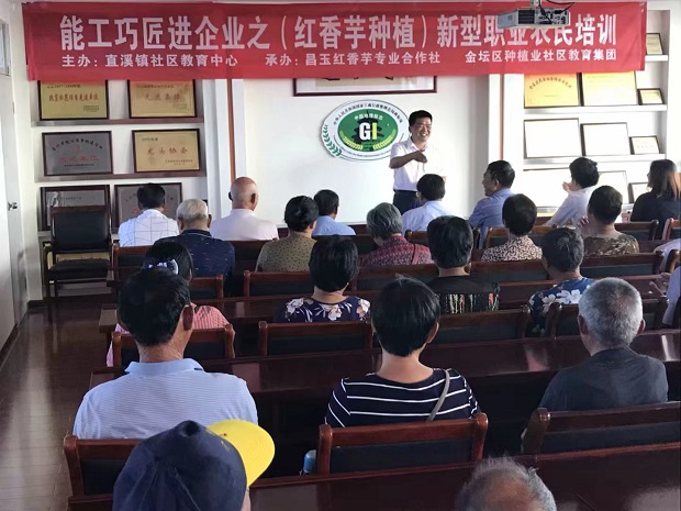 2016年起,蔡冬生带领合作社与直溪镇社区教育中心联合共建“健倡”红香芋种植教育服务“三农”基地。通过直溪镇社区教育中心联系,他带领合作社与江苏省农科院经作所合作,集成组装了红香芋覆黑膜新型高效栽培新技术体系,在白塔、朱林、西岗等村镇辐射种植面积10000亩左右,红香芋产量增加20%以上,每亩可减少用工25个左右,节约工本80%以上,主要作业环节提高工效5~8倍。开展建昌红香芋全程机械化生产技术体系建设。每年组织红香芋机械化种植现场观摩及相关培训12场次以上,年培训近2000人次。合作社购置垄土机、播种机、中型拖拉机、覆膜机、无人机、收获一体机等部分农机,每年服务农田980亩次,全程机械化覆盖率达到60%,从而减少劳动力,提高生产效率。采用“讲给农民听,教会农民干,帮助农民赚”的工作思路,不断提升农民综合素养、生产技术和经营能力,为发展现代化农业、职业化农民、城镇化农村提供了有力的支撑。2018年7月,“健倡”红香芋种植教育服务“三农”基地被认定为江苏省教育服务“三农”高水平示范基地。