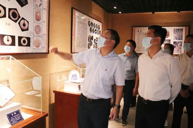 市委常委、宣传部长陈涛还观看了楼梯文化长廊一幅幅照片,详细了解朱林历史文化、古今先贤、特色产业,来到三星村文化展室,区委书记陆秋明向陈涛一行全面介绍了三星村文化遗址文物挖掘、资源保护、规划开发等情况。