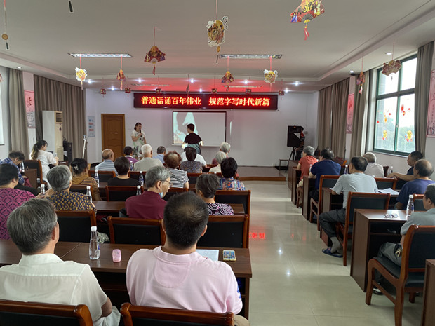 今年9月12日至18日为第24届全国推广普通话宣传周。推普周期间,解放村委不仅要求工作人员自觉使用普通话,并将普通话推广融入传统文化活动中。9月14日上午,解放村在三楼活动室举办了以“普通话诵百年伟业 规范字写时代新篇”为主题的诗词大会活动。