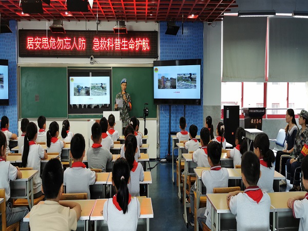 社区特邀请退役军人志愿者王臻给同学们进行防空防灾知识宣讲,让青少年知道人防工作是国之大事、是国家战略,大家必须要有忧患意识、危机意识!