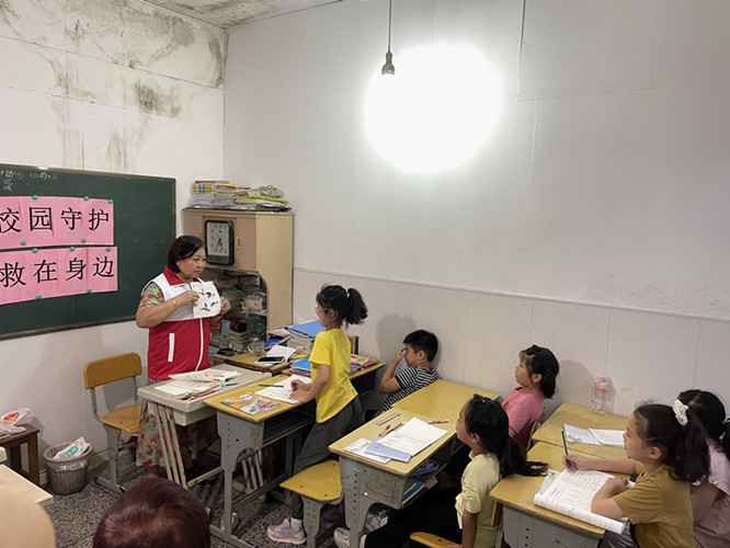 每年9月的第二个周六为“世界急救日”。近日,在第22个“世界急救日”来临前夕,锦绣花园社区红十字会志愿者来到辖区晚托班开展急救知识普及活动。