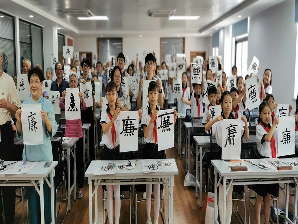 “百人书廉”——百人书廉,百份心意。现场,在彭德荣的引领下,戚墅堰实验小学的师生、戚研所检测和培训党支部的青年党员与花苑社区的退休老党员共同执笔书写自己心中的“廉”。不同的身份,不同的字形,呈现的是同一颗廉洁之心。活动勉励大家无论身在何时何地,都要有“两袖清风”的做人准则,都要将“学廉、尊廉、崇廉、爱廉”的处事之道践行到底,都要将“廉”字永远刻在心中!(经开区戚墅堰街道花苑社区 林先鹤)