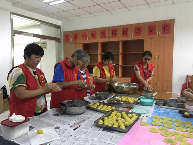 武进区湖塘镇张家坝社区开展“月圆中秋”芝麻糖饼制作活动