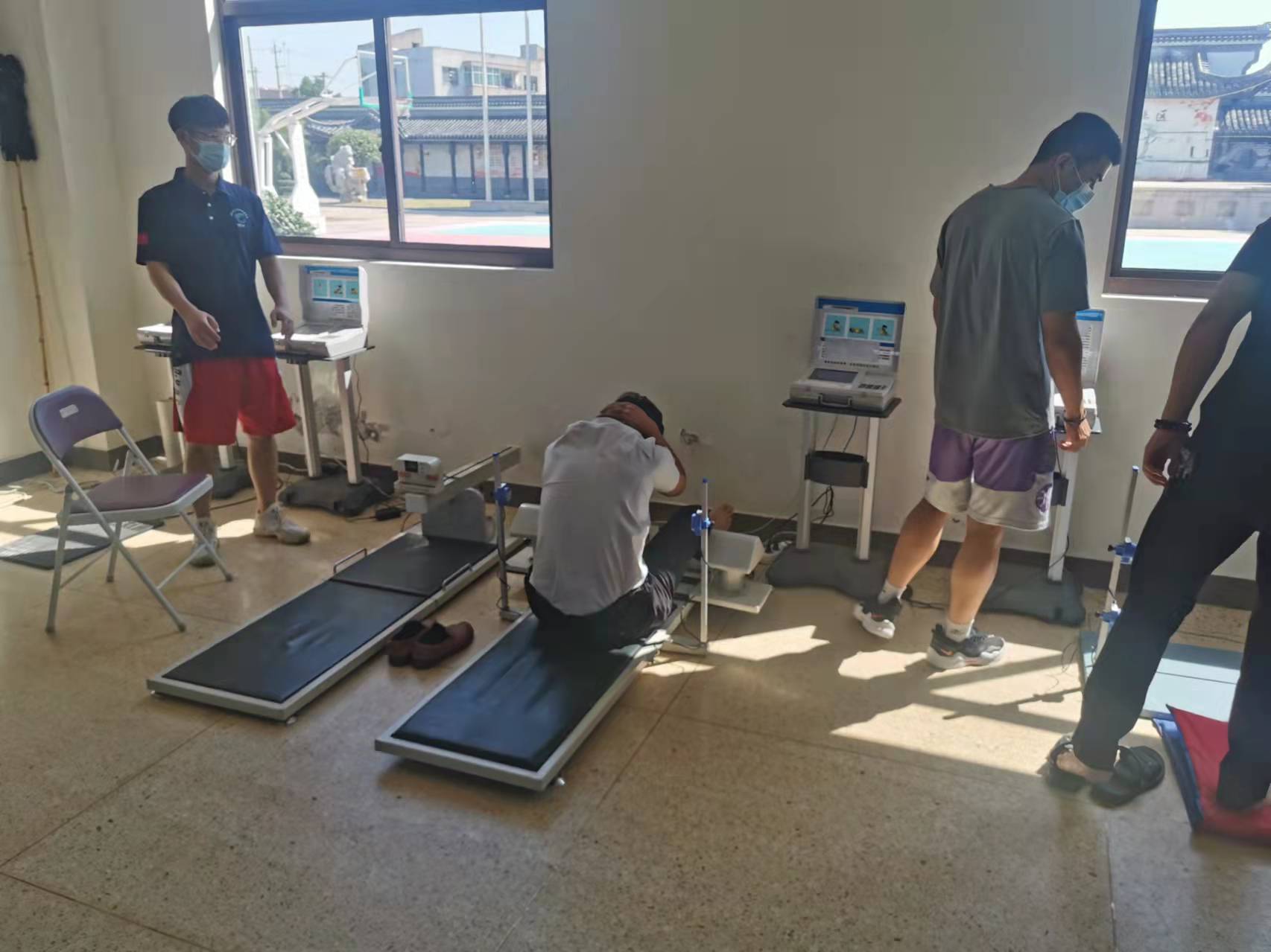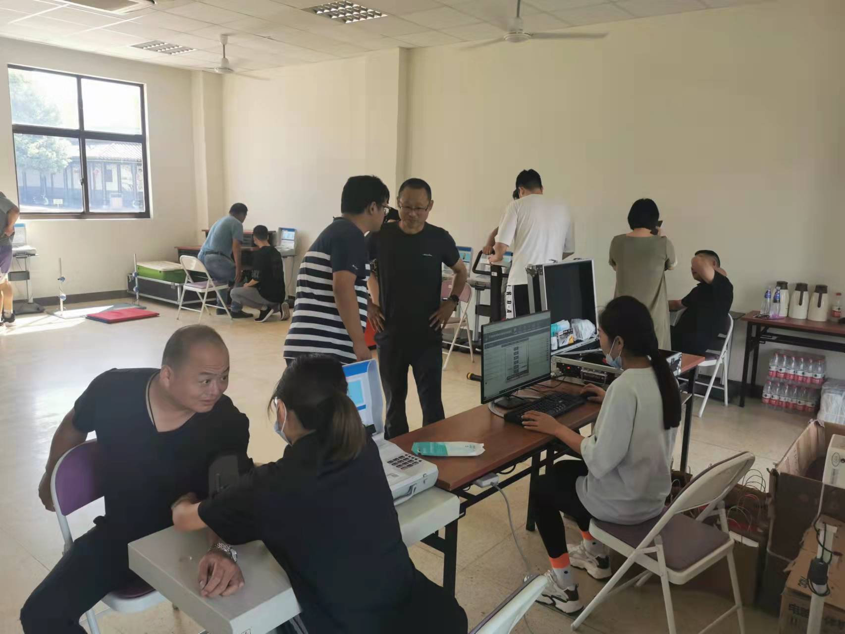 上午九点刚过,常州市体育局的专家和工作人员便安装调试好了各种仪器设备,居民们纷沓至来,工作人员的引导下,分别检查了身体机能和身体形态,进行了握力、背力、俯卧撑、仰卧起坐、平衡木、闭眼单脚站立、选择反应时等项目的检测。专家们一边工作,一边耐心地和居民交流各项数据对于身体素质的作用和意义。