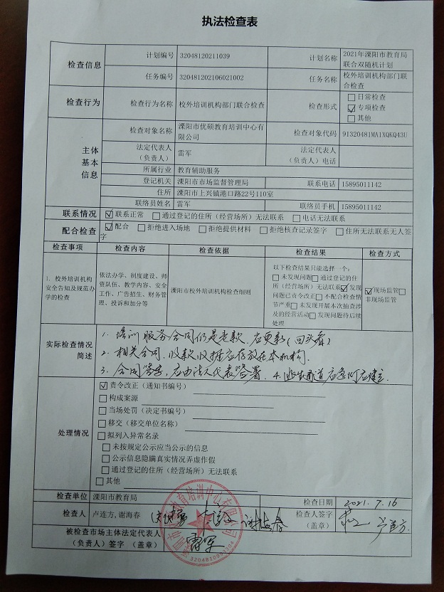 配合文明城市复检、落实“双减”工作要求,经开区(上兴镇)积极开展校外培训机构常规督查系列行动