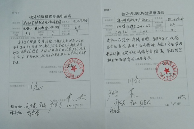 四、校外培训机构复培复课验收(9月6日)