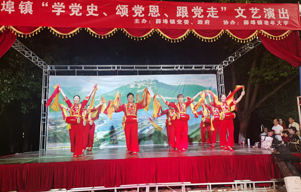 金秋送爽,丹桂飘香。正值国庆节来临之际,薛埠镇老年大学在镇仙湖公园举办“学党史、颂党恩、跟党走”文艺演出活动。薛埠镇文体服务站、社区教育中心、老年大学相关人员以及社区居民500余人参加了此次活动。