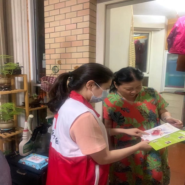 为弘扬“人道、博爱、奉献”的红十字精神,进一步提升“红十字救在身边”品牌的传播力、影响力,中秋、国庆假期,前后北岸社区围绕“关爱生命、救在身边”这一主题,开展了应急救护宣传活动。红十字志愿者入户宣传了自救互救相关知识,并发放《常见急症和意外伤害》、《心肺复苏》等宣传资料。居民王阿姨说到:“应急救护宣传非常实用,在遇到紧急、突发情况时,懂得了如何开展自救互救,知道了救助过程中应注意急救的黄金救命时间和急救的生命链。