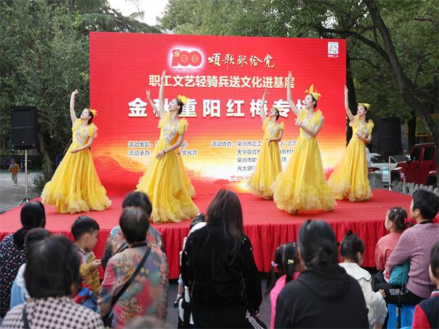 在一年一度的重阳佳节来临之际,10月12日下午,红梅新村社区与常州市总工会联合举办了“颂歌献给党——职工文艺轻骑兵送文化进基层金秋重阳红梅专场”为主题的重阳节文艺演出活动和党员志愿者志愿服务活动,为社区老人送上节日祝福,营造社区尊老、爱老、助老的浓厚氛围。