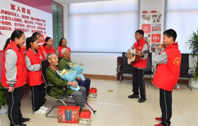 在街道集中开展慰问活动。抗美援朝老兵和经开区中学师生齐聚一堂,学生们拿出携带的乐器,个个争先恐后的为敬爱的英雄表演才艺。老兵们看着眼前活泼可爱的孩子为自己献艺很是高兴,练如金老兵便打开了话匣子,为师生讲述自己年轻时参军到朝鲜参战的往事。章坤荣老兵身着军装,胸前挂满了军功章,跟练如金聊起了自己的参战经历。老兵们相谈甚欢,脸上洋溢着自豪。当师生们听到老兵说到打赢美帝国主义,激动地直拍手,赞扬老兵英勇。在听完老兵讲述战斗故事后,街道办事处副主任周莉、街道行政审批局局长顾莉华向二位老人致以节日的问候,为他们送上重阳糕和礼品,经开区中学的孩子们也为老兵们送上鲜花,练如金老兵激动的说道:“感谢党和政府时时刻刻记着我!我是从战争年代走过来的,祖国越来越强大,我的生活也越来越幸福!”