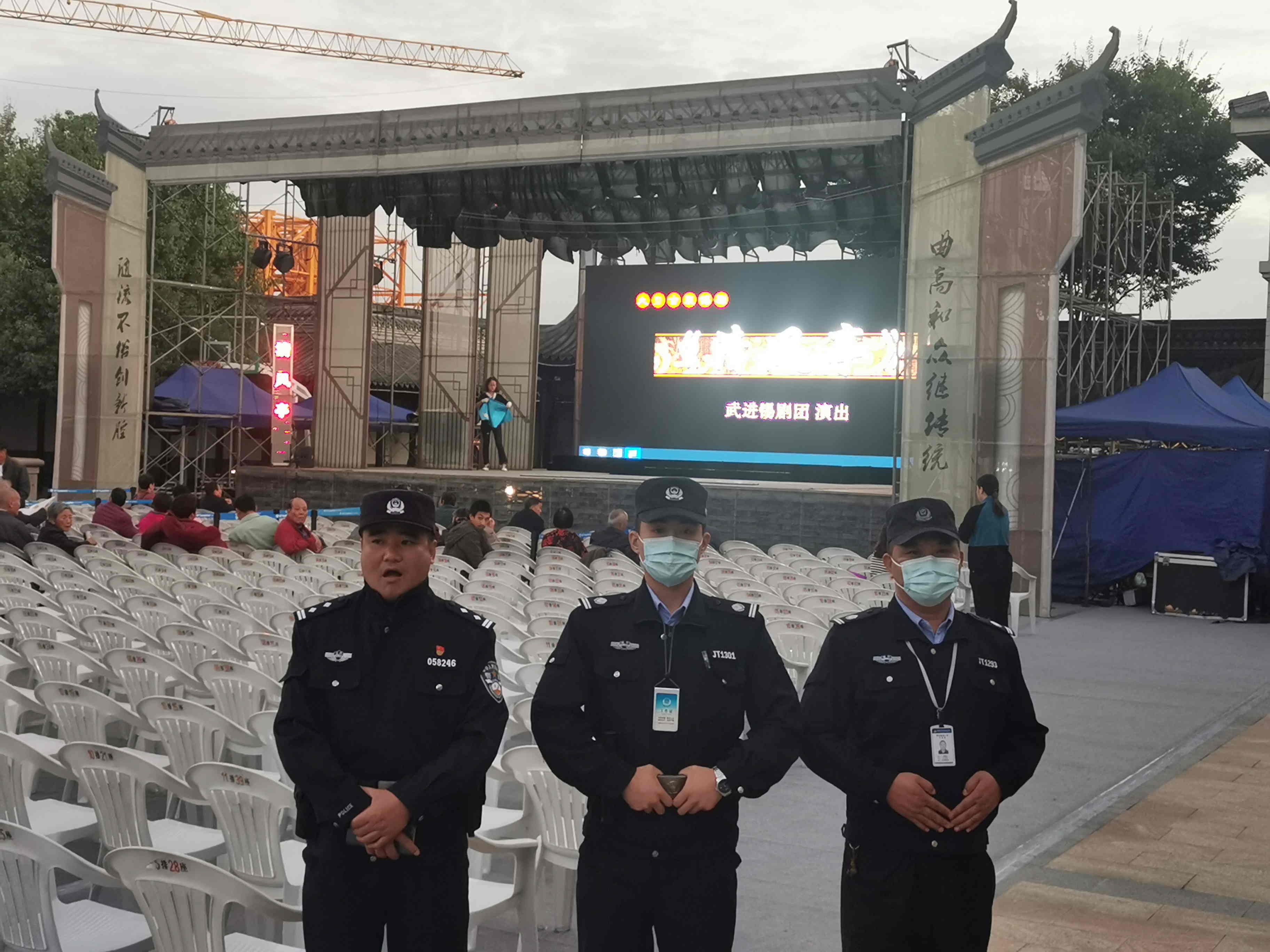 为保障演出的安全有序,水北派出所每天派出大量警力在现场维持秩序,散场的时候引导车辆行人有序退场;城管中队的队员们在入口处指引车辆停放,搀扶老年观众;团工委派出的志愿者在现场穿梭,为观众朋友指引座位、答疑解难……