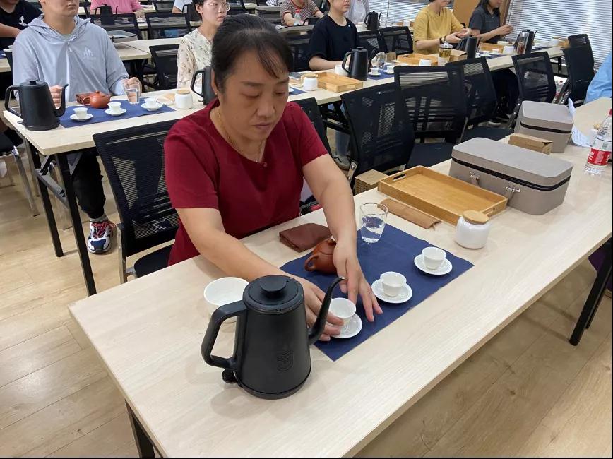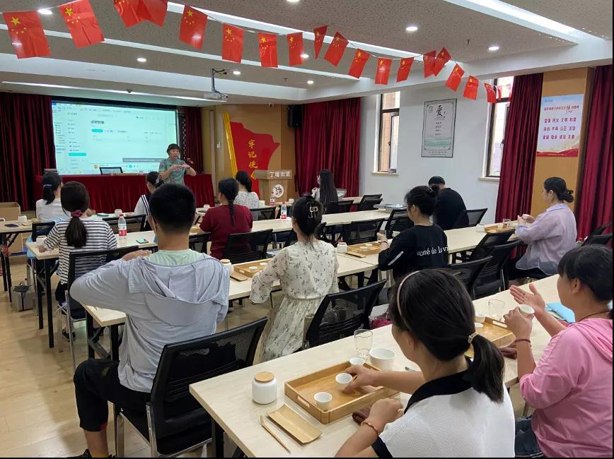此次培训班聘请江苏省常州技师学院的老师授课,上课形式以理论结合实操为主,学习茶文化基础、茶学基础、冲泡技巧,主要课程内容包括饮茶文化渊源、行茶礼仪、茶叶鉴赏和茶叶保管、茶饮与健康、乌龙茶紫砂壶泡法、红茶白瓷壶泡法、绿茶、白茶玻璃杯泡法等等。