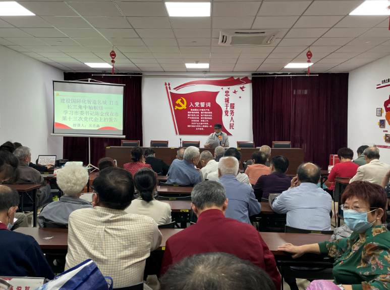 10月20日,兆丰花苑社区党总支开展了“建设国际化智造名城打造长三角中轴枢纽”专题党课,全体党员一起学习了市委书记陈金虎在市第十三次党代会上的报告。