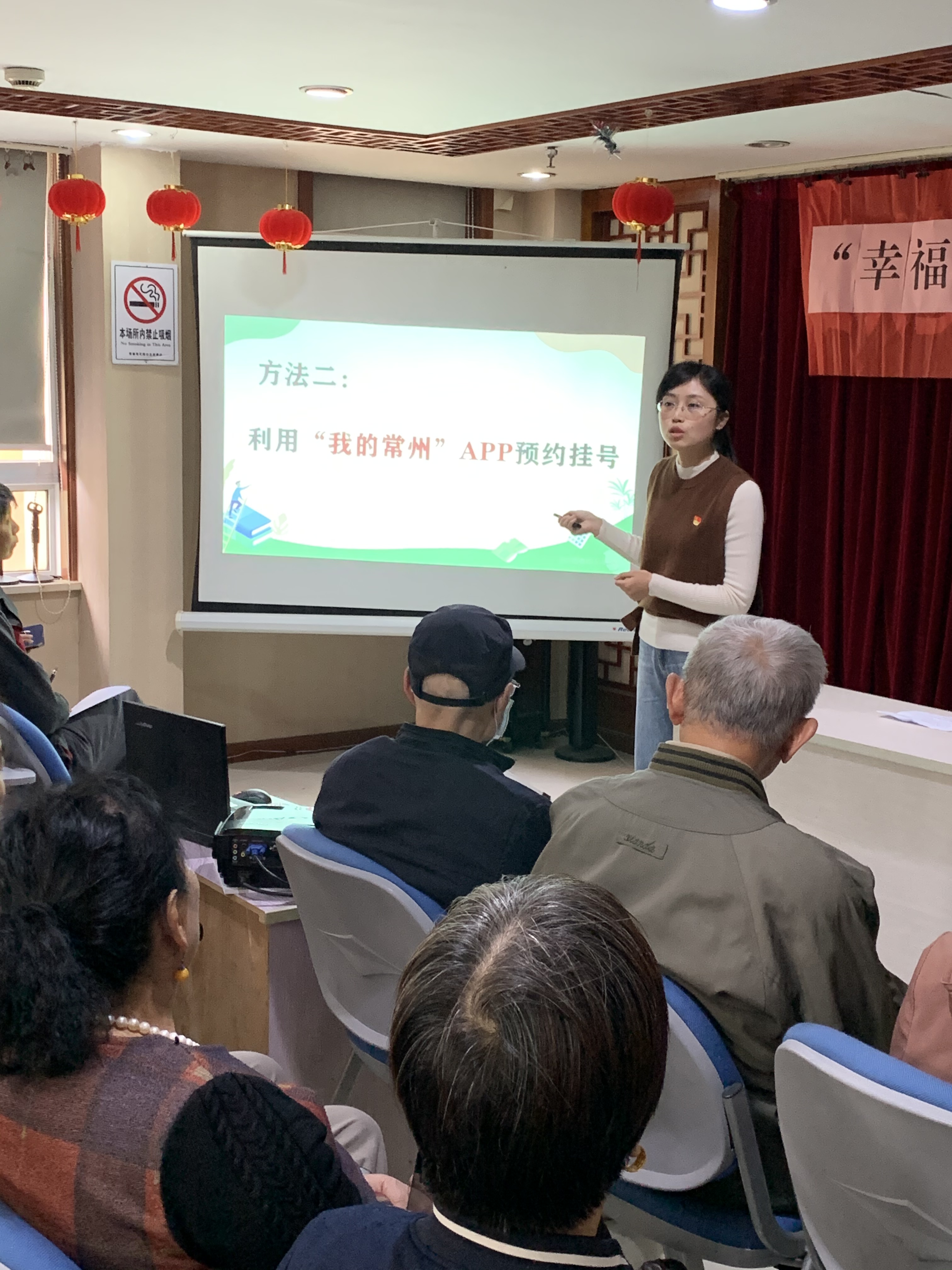 这次,天宁区老年大学蒋余老师作为主讲老师,志愿老师团队全程协助指导,为社区老年朋友们讲解如何运用多种方式进行线上挂号。