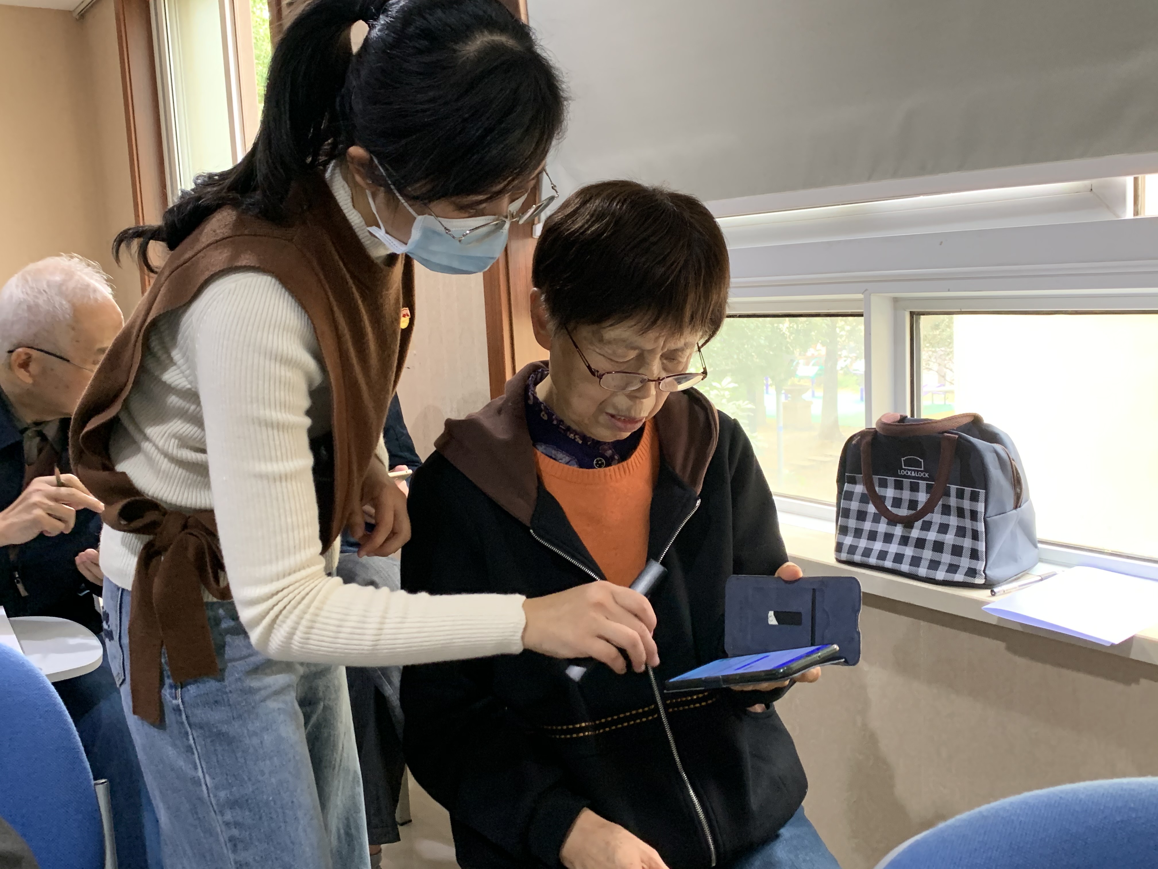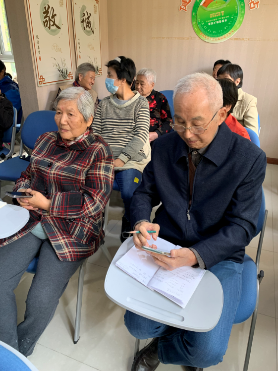 感受到大家的学习热情,同时也为了照顾长者的情况,课堂上蒋老师和志愿者老师对有问题的老人进行一对一细致讲解,得到在场老人们的一致认可和赞赏。