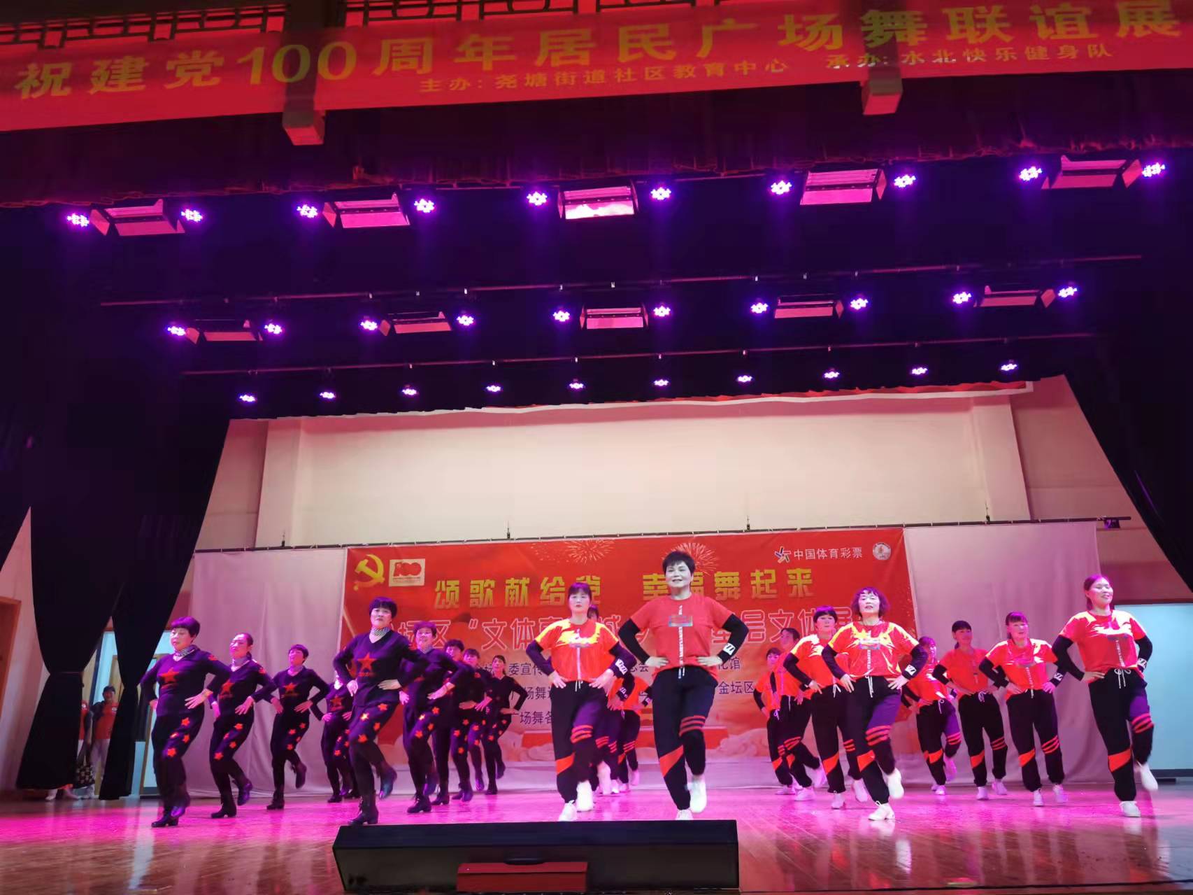 2021年10月的最后一天夜晚,尧塘街道社区教育中心举办了“颂歌献给党幸福舞起来”居民广场舞联谊。