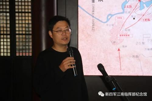 座谈会在奏唱新四军军歌中开始,新四军江南指挥部纪念馆馆长张燕回顾了新四军江南指挥部成立的历史意义并结合习近平总书记的七一讲话精神做了发言。与会代表共同观看完短片《运筹帷幄,决胜江南》。