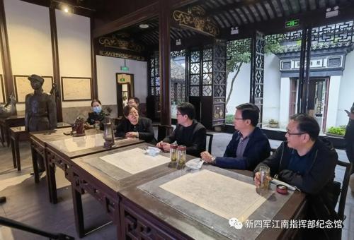2021年11月7日,常州市第一批游学实验基地、江苏省第二批游学实验基地——水西新四军江南指挥部,为纪念其成立八十二周年,在指挥部司令部旧址内举行了一场“红色基地与学校德育”为主题的小型座谈会,弘扬新四军精神,唱响红色主旋律。此次活动邀请溧阳教育局领导及关注红色事业的热心人士参与,大家针对红色场馆对学生德育教育等方面进行探讨,为基地(纪念馆)发展提出意见与建议,探讨馆校未来的合作方向。
