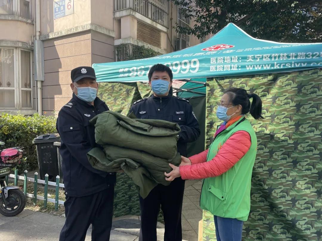 王女士表示:“天一冷,可急坏了!寻思着这么冷的天,家里都要穿棉袄,露天过夜的志愿者可怎么办!”她连忙委托物业保安赠送5件防寒大衣给卡口的志愿者。有她的带头,捐挡风布的、捐取暖器的、捐暖宝宝的纷至沓来!疫情当前,在防护物资紧缺的情况下,收到热心市民的关爱,让现场执勤人员感到心里暖暖的。“今天降温了,您给我们送来的棉袄真的是太及时了,对我们执勤人员来说这就是雪中送炭!”执勤人员激动地说道。 (红梅街道锦东社区 戴颖婕)