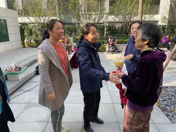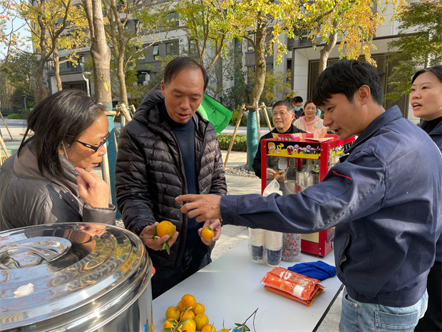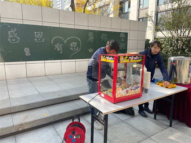 下午2点不到,物业工作人员便忙碌了起来,准备了红枣茶、爆米花、烤红薯等各种美食,香甜的味道吸引了不少居民来到现场。社区和物业工作人员将热乎乎的美食递给大家品尝,并提醒大家注意冬季防寒保暖,及时增添衣物。大家围坐在一起,一边吃着美食,一边畅叙邻里感情,整个现场洋溢着浓浓的和谐“感恩节”氛围。一杯红枣茶,一声问候,一句关心,驱散了冬日的寒冷,也拉近了社区、物业与居民群众之间的距离,提升居民们的幸福感、归属感。