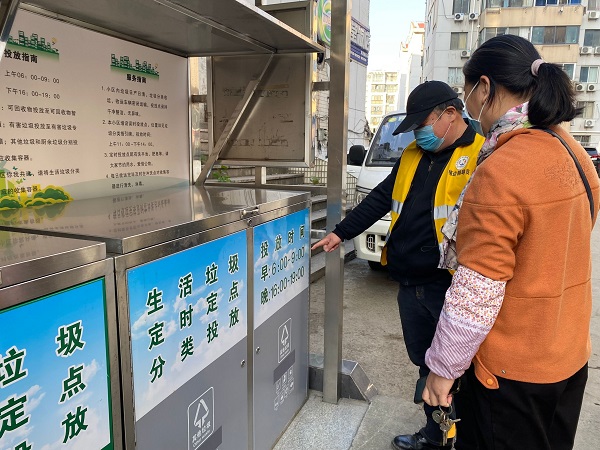 博爱路社区充分发挥党建引领作用,动员广大社区党员、楼道小组长、志愿者、物业公司等积极加入到社区垃圾分类“桶前值守”的队伍中,借助网格管理的优势,在推行垃圾分类政策过程中发挥党员的模范带头作用以及物业的垃圾分类责任主体作用,在定时定点投放时间,守好桶、护好桶,引导居民实现垃圾精准投放、集中管理,杜绝乱扔垃圾的现象。