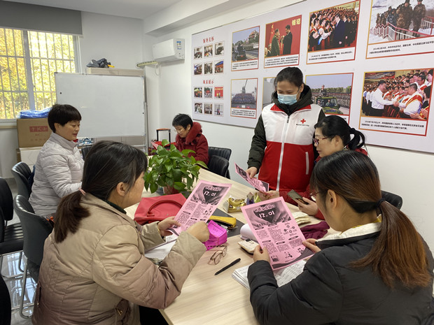 活动内容包括组织居民代表召开宣传小会、小区内悬挂宣传横幅、向小区居民发放宣传资料等。在宣传小会上,通济桥社区邀请红十字会志愿者给居民代表发放艾滋病宣传单页,详细讲解艾滋病的由来、危害、传播方式和预防方法。会议结束之后,居民代表分别和周边居民发放宣传单页,逐门逐户介绍对艾滋病的认识和预防的相关讯息。