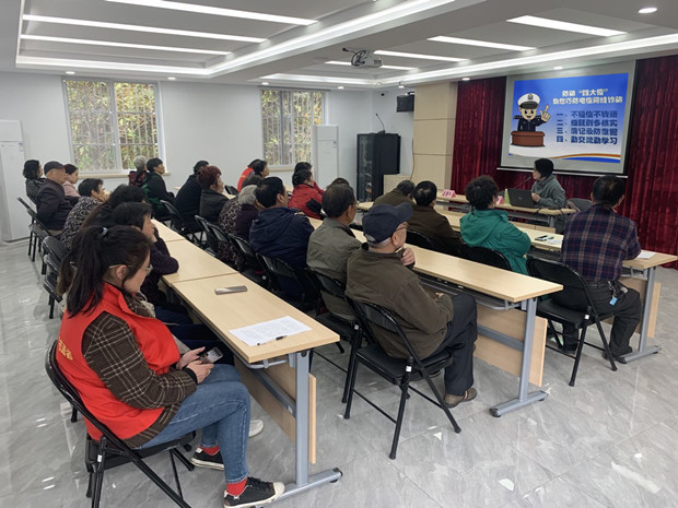 为提升社区居民的电信诈骗防范意识,尤其是老年人防盗防诈骗的安全意识,保护老年人财产安全,创建和谐安全的社区环境,2021年11月26日,通济桥社区联合电信公司志愿者组织辖区中老年居民代表开展“提升防范意识,谨防电信诈骗”知识讲座。
