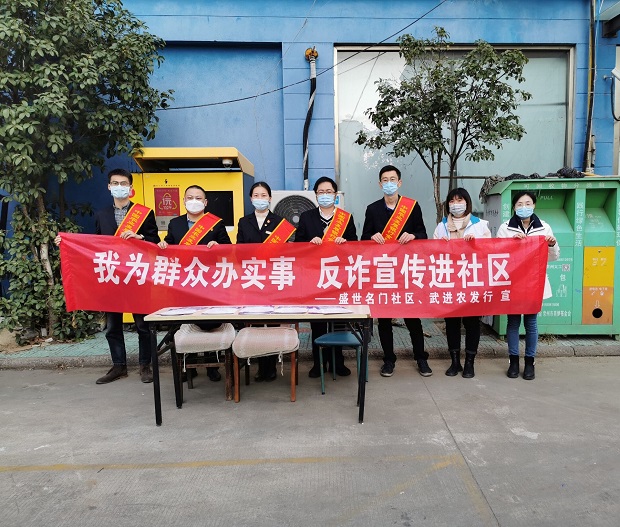 年底将至,为不断提高广大群众的反诈意识,有效预防和遏制各类非法集资和电信网络诈骗的多发势头,守住群众的钱袋子,开展了形式多样的反诈宣传活动。12月3日下午,盛世名门社区干事协同武进农发行工作人员一同向辖区居民开展防范诈骗宣传活动,在世纪花园小区通过拉横幅、发放宣传资料、推广注册国家反诈中心APP等形式开展此次宣传活动。