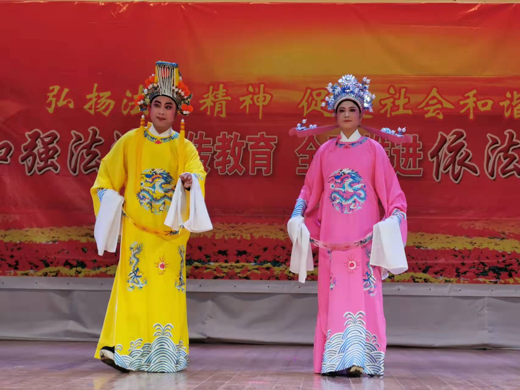 讲座结束,是一场精彩纷呈的文娱节目,金坛区乡音普法艺术团的演员们,用歌舞、相声、小品,歌颂了我们祖国在法治建设方面取得的伟大成就,用诙谐幽默的形式,表达了新时代社区居民学法用法的热情。