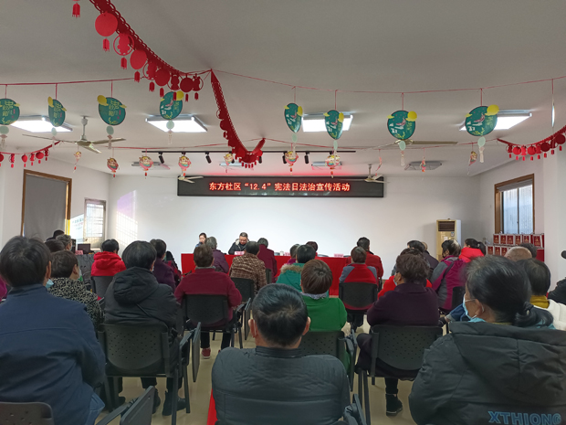 活动分为室内法治宣传讲座和室外广场集中宣传两个环节。在法治宣传讲座中,社区组织辖区内50余位居民学习了宪法知识;同时社区法律服务志愿者在广场上向居民群众发放《宪法》、《法治》等法律法规方面的宣传资料,并积极解答了居民群众的咨询,使居民群众获得了法律援助的途径和方法。(常州市武进区湖塘镇东方社区 季鸣)