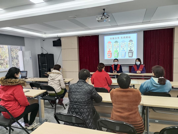 青年志愿者召开“垃圾分类,从我做起”主题讲座,向居民代表宣传垃圾分类的意义以及垃圾分类的知识和方法,倡导大家从自己做起,从小事做起,同时带动他人一起做好垃圾分类。