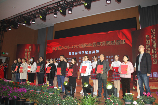在当天的开幕式上,一批社区教育特殊贡献奖、社区教育突出贡献单位、支持社区教育先进个人、最优学习型组织、最佳学习型家庭、最亮学习之星、最美社区教育志愿者(团队)获得者受到了表彰。