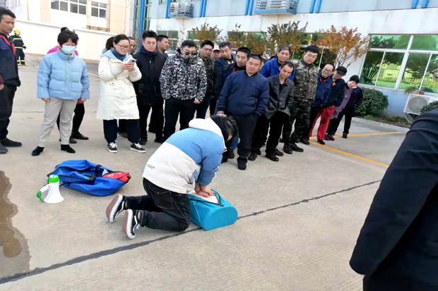 在操作演练环节,企业职工在专业人员的指导下实际操作使用消防水带、灭火器,学习急救方法,实现了从理论知识到实际动手能力的跨越,提高了自防自救能力。
