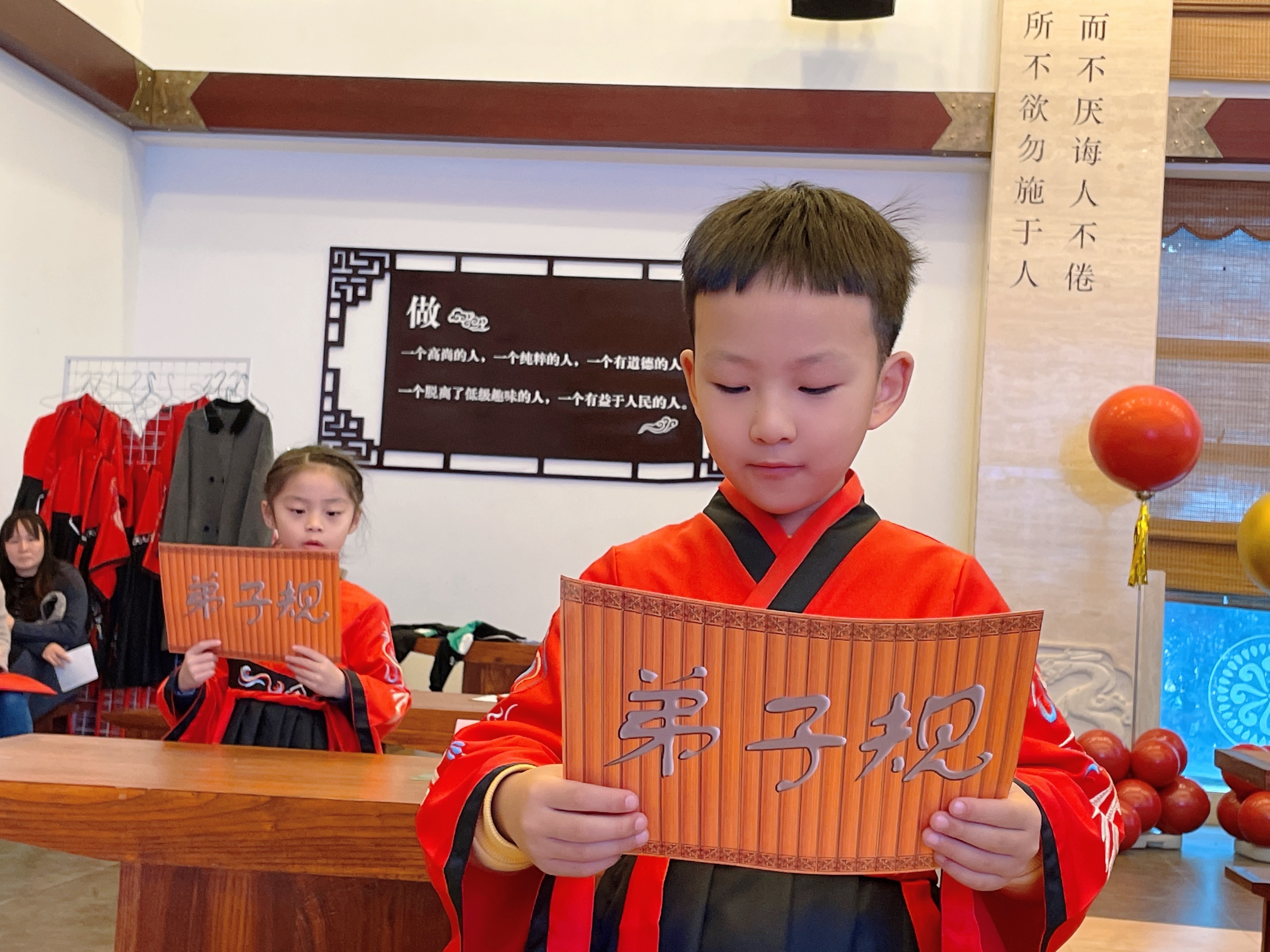 活动结束后,许多孩子对还是有些依依不舍,他们争相穿着汉服与自己的作品合影。相信这次廉洁家风书法大赛已经在他们心中播下了廉洁的种子,这枚种子也会伴随孩子成长在孩子们的心底生根发芽,茁壮成长。(花南社区居民学校)