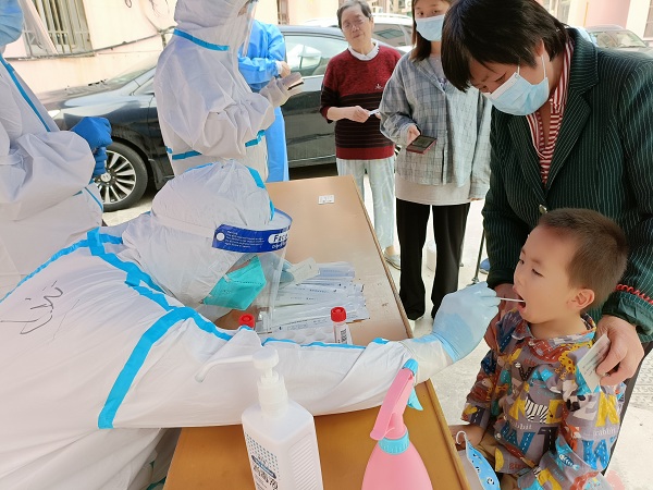 “请您嘴巴张大一些,很快就好了”。在博爱路83号小区,汤俊涛今天第一次给邻居们做核酸采样,此前他已经接受多次专业培训,每一步都严格按照规范要求进行操作。居民们表示他操作规范且专业,现场看采样速度并不慢。汤俊涛表示:“今天虽然是第一天上岗,但是居民们都挺配合的,整体都比较顺畅。后期会多加练习,争取让采样手法更加熟练、更加专业。”本轮全员核酸汤俊涛和党员志愿者徐佩娟两个人搭档完成了665人次的采样。