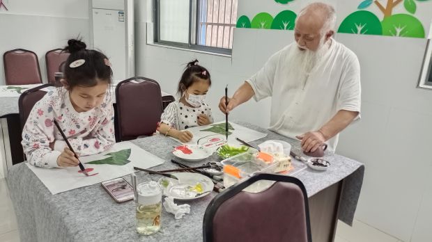 活动伊始,王玉伦老师首先通过“说”端午让孩子们感受传统文化的熏陶,加深对传统文化的理解,增长有关传统文化与传统节日的知识。随后,他引导孩子们“画”端午,在创作过程中,王老师注重让学生更好地感受笔下粽叶包成粽子的画面质感表现,通过“可爱小粽子”的主题绘画,学习了调色方法、技巧以及美丽的色彩搭配。在“画”端午中,孩子们进一步增进了同学间的合作精神与友谊。本节课通过新颖有趣的方式激发了同学们的创作兴趣,培养了同学们的想象力和创造力,并且能更好地实现对传统文化知识的延续。